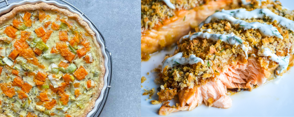 - Polenta tart with sweet potato, leeks, tomato, and goat’s cheese